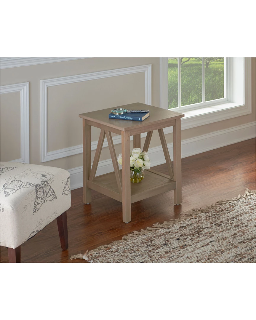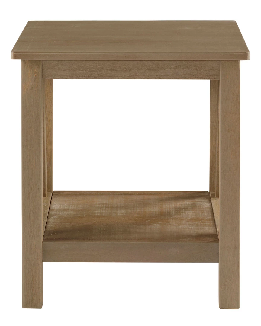 - Design details: Our Candler Collection has a simple yet eye-catching design that is matched with incredible durability. The End Table features a simple body that makes it perfect for any space. A gracious tabletop and spacious bottom shelf provide ample storage and display space. A neutral driftwood finish allows this piece to easily complement your homes decor.