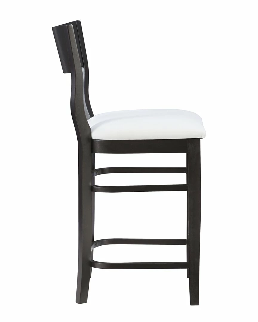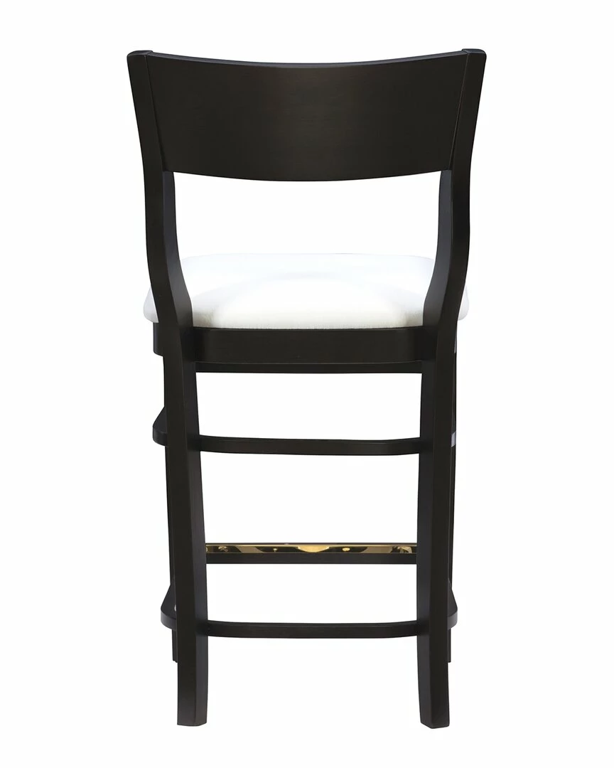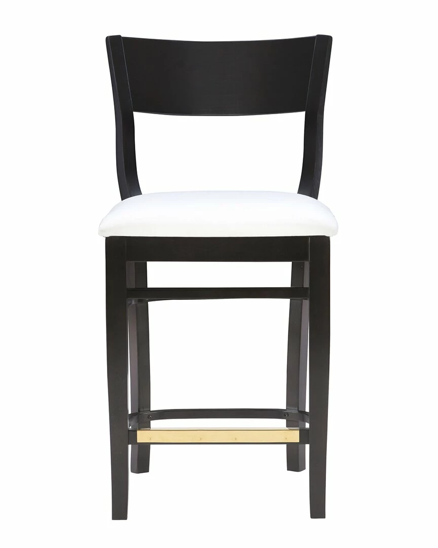 - Sleek and fitted to the nines with subtle embellishments, this Black toned counter stool provides a renewed take on a farmhouse classic. The beechwood frame is reinforced by two support rungs, ensuring long term stability, while the footrest is outfitted with a brass kickback for extra protection. The padded seat is upholstered with white polyester fabric for added comfort and easy cleaning. This counter stool set of two arrives fully assembled and ready to bring new excitement to your kitchen or home bar.