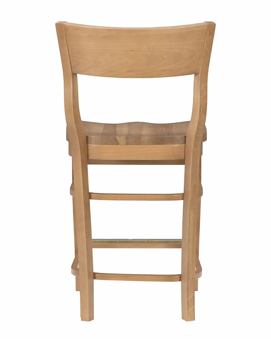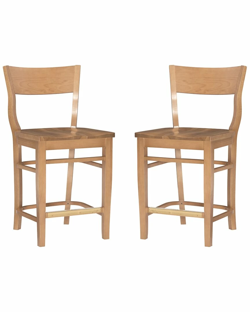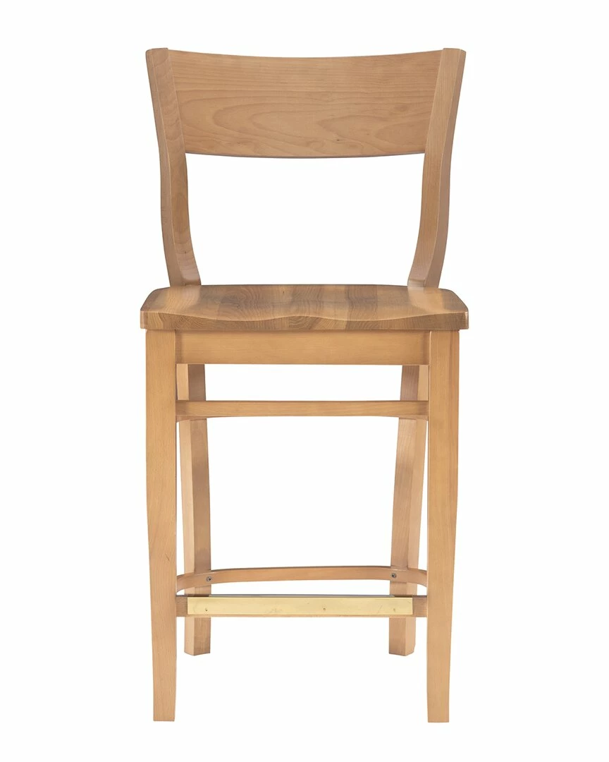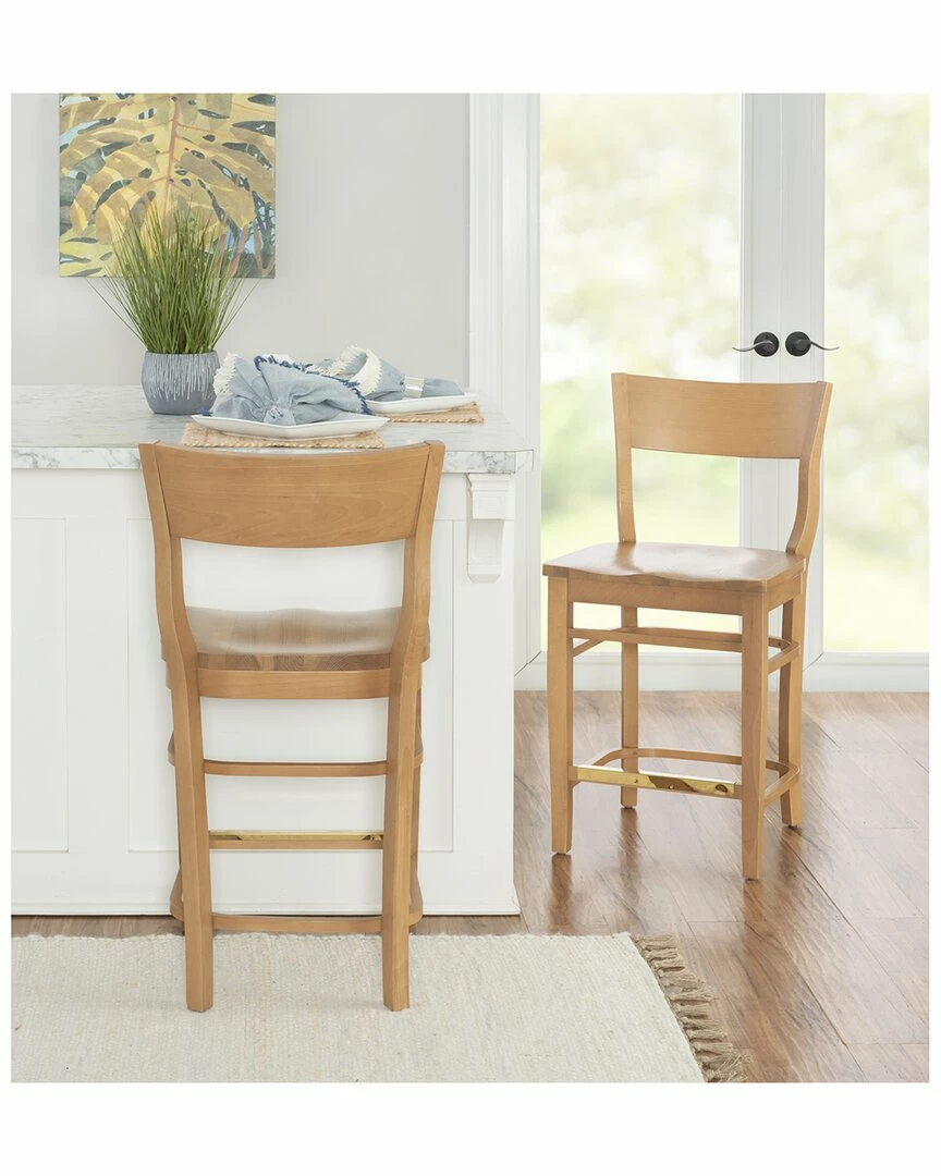 - Sleek and fitted to the nines with subtle embellishments, this natural toned counter stool provides a renewed take on a farmhouse classic. The beechwood frame is reinforced by two support rungs, ensuring long term stability, while the footrest is outfitted with a brass kickback for extra protection. Bold bends in the backrest are offset by a traditional saddle seat, making for a well balanced accent piece no matter the setting. This counter stool set of two arrives fully assembled and ready to bring new excitement to your kitchen or home bar.