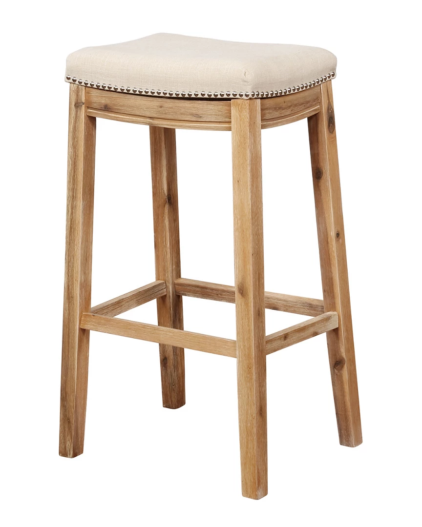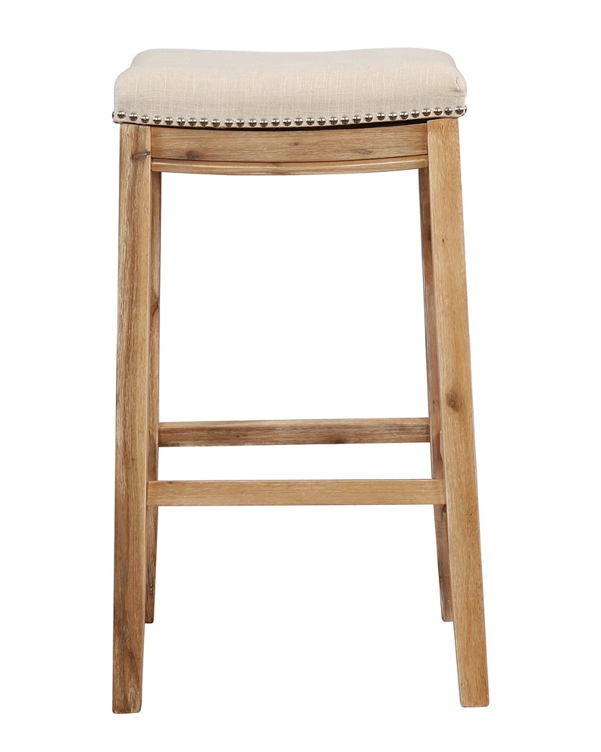 - Design details: The Claridge Acacia Bar Stool will add stylish seating to any counter or high top table. The sturdy wood frame has a rustic acacia finish accented by a natural linen upholstered seat. Shiny silver nailhead trim makes for an eyecatching detail. 30″ Seat Height. 275 pound weight limit.