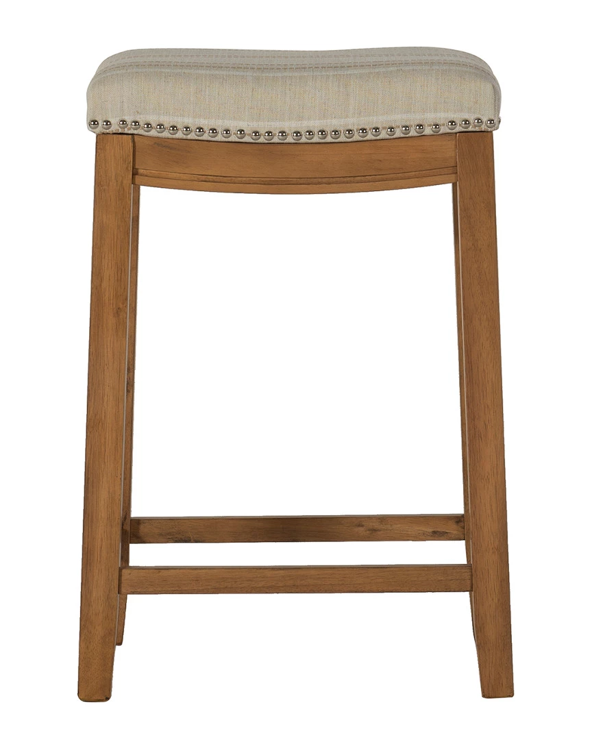- Design details: The Claridge Bar Stool will add stylish seating to any home bar or high top table. The sturdy wood frame has a rustic brown finish accented by a neutral striped polyester linen blend fabric seat. Brushed silver nailhead trim adds an eye-catching detail. 30″ Seat Height. 275 pound weight limit.