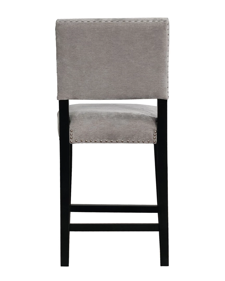 - Design details: Transitional in style, the Corey Stool has clean lines and a smooth design. The black finished frame is accented by dark gray washed velvet upholstery and embellished with shiny silver nailheads. Footrails provide added stability to the sturdy wood frame. Counter Height.
