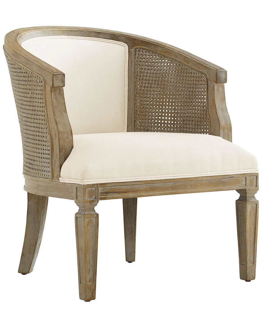 - Design details: Incorporate sophistication and elegance into your space with the Joni Chair. The barrel shaped design is accented with cane detailed sides and a washed finish. Light neutral fabric graces the plush seat and back. An easy addition to traditional to transitional spaces.
