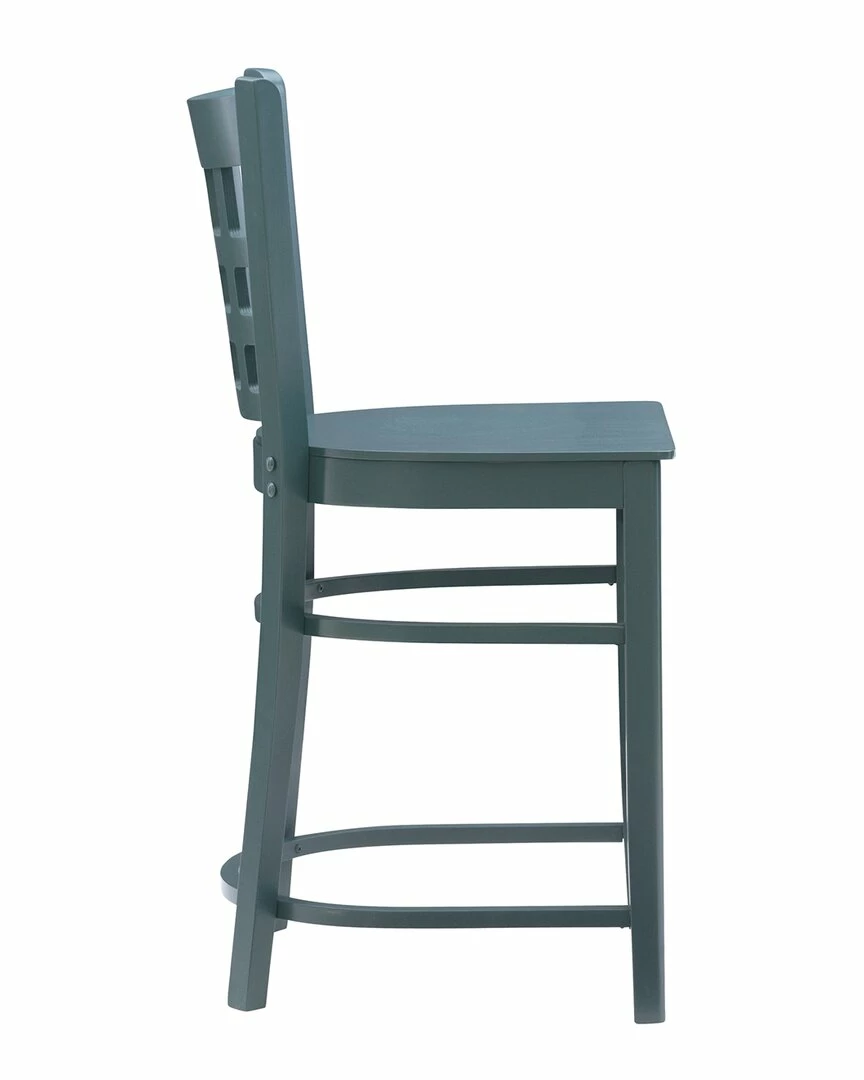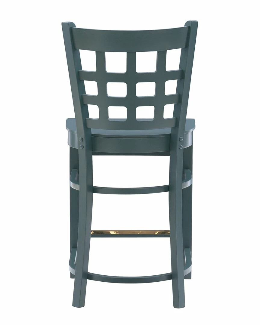 - Holding to tradition, yet striking balance with modern temperament, this farmhouse style counter stool is a perfect addition to a variety of dining settings. A grid of open squares is framed by the curved back, inspired by lattice fencing of distant countrysides. Made of solid beechwood for ensured strength and stability, the frame is painted in hunter green, then sealed and sanded before receiving a glossy lacquer finish. With a seat height of 24, the set of two is an ideal match for counters 35 to 39 high and supports up to 300 lbs each chair.