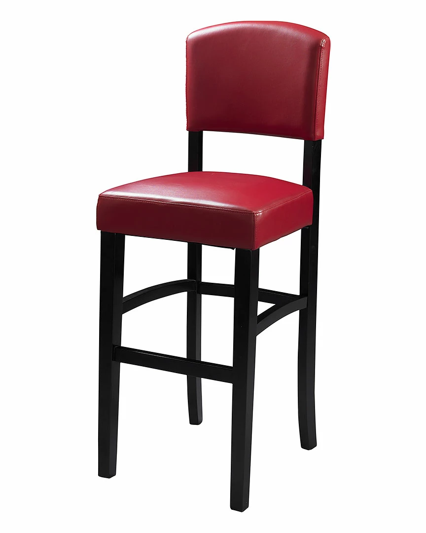 - Dark red stool with a Chinese maple wood frame and a PVC seat