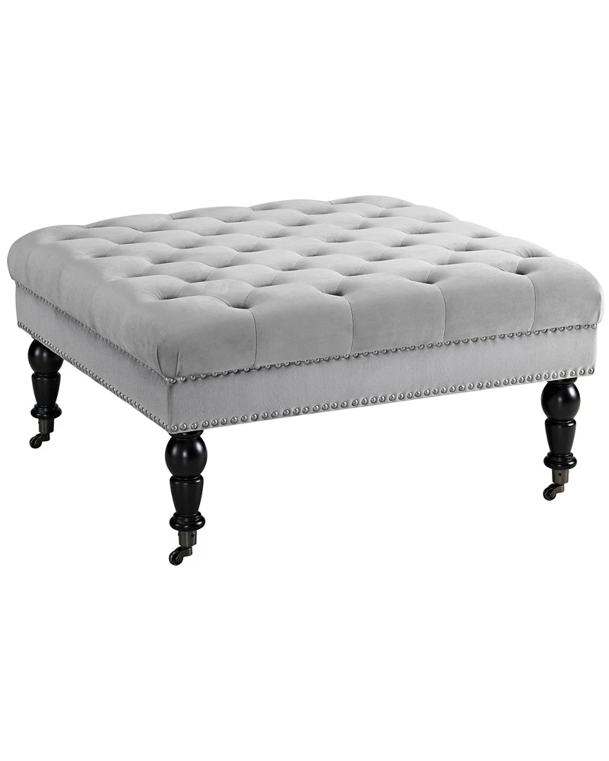- Design details: The Isabelle Square Ottoman is a stylish and versatile addition to your home’s decor. Perfect for use as an ottoman or coffee table, thepc has a tufted top upholstered in a soft gray fabric. Brushed silver nailheads accent the side, while turned black finished legs complete thepc.