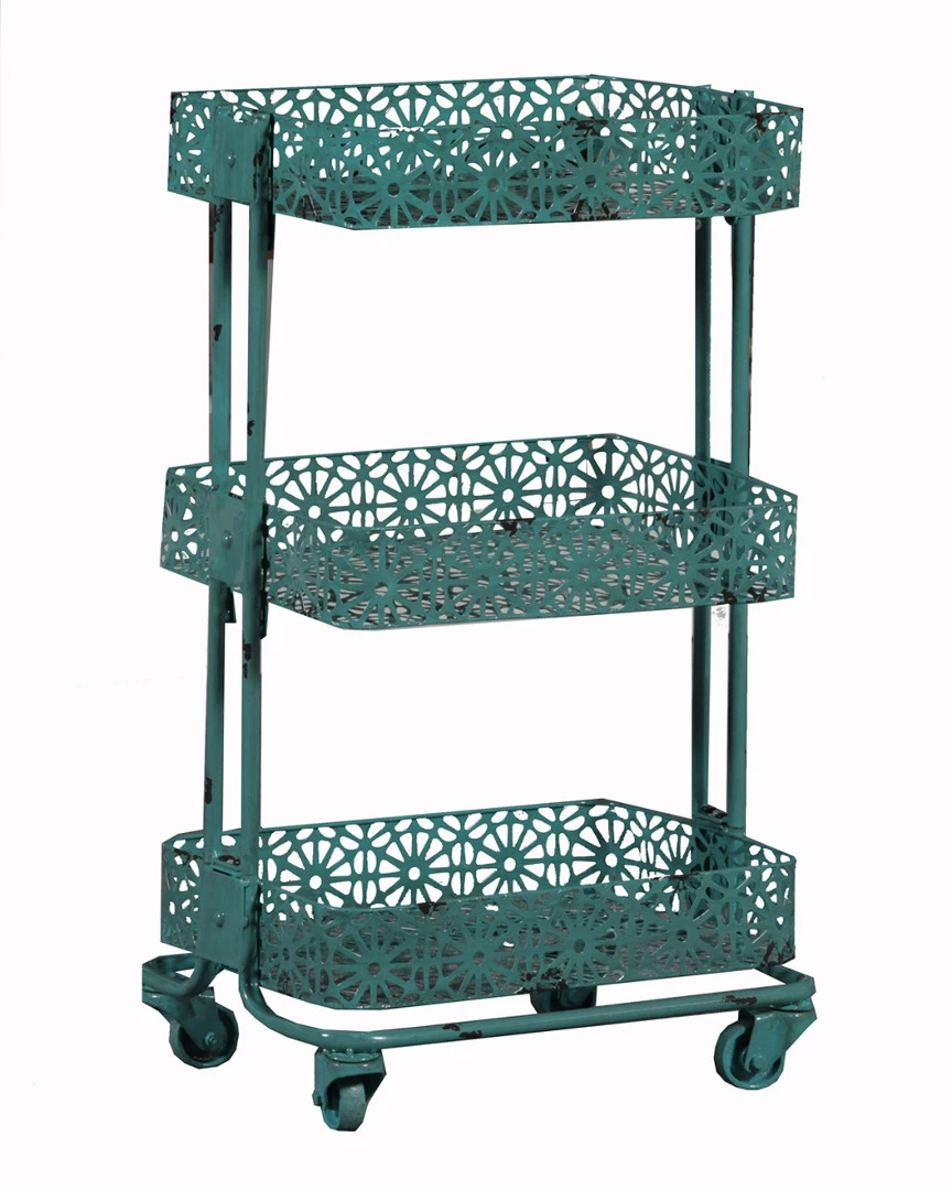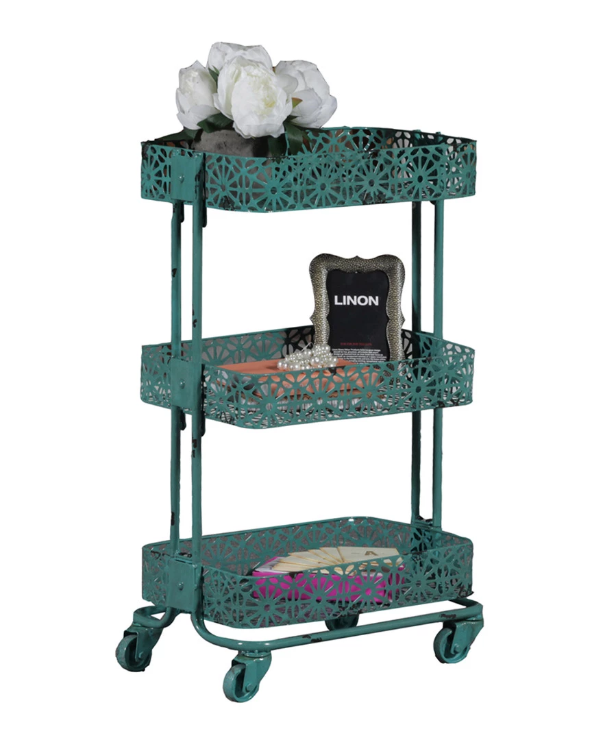 Buy π€© Linon Furniture Linon Turquoise Metal Three Tier Cart Home Bar Carts & Accessories β